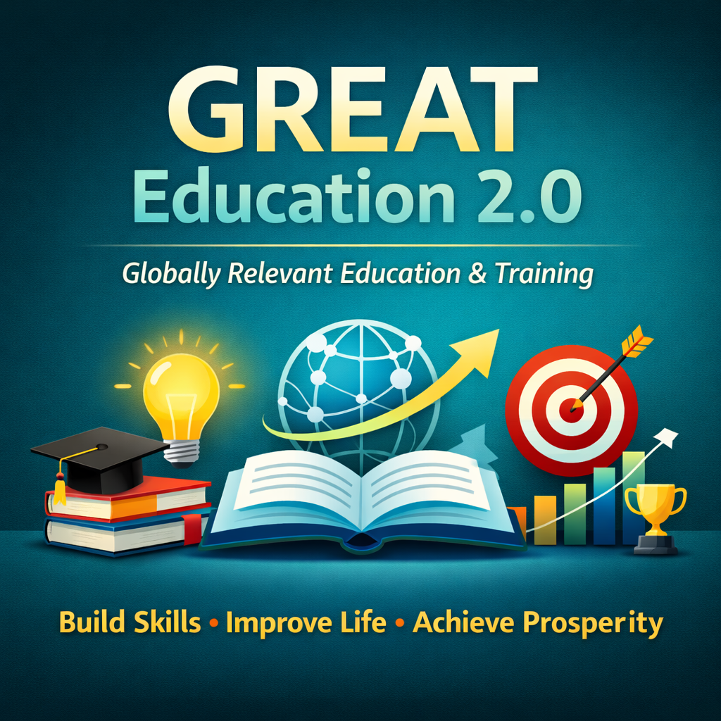 Traditional education often focuses only on academic knowledge, while GREAT Education 2.0 focuses on practical life skills and personal development. The goal is to help individuals become more independent, make better decisions, and build prosperity in their lives.